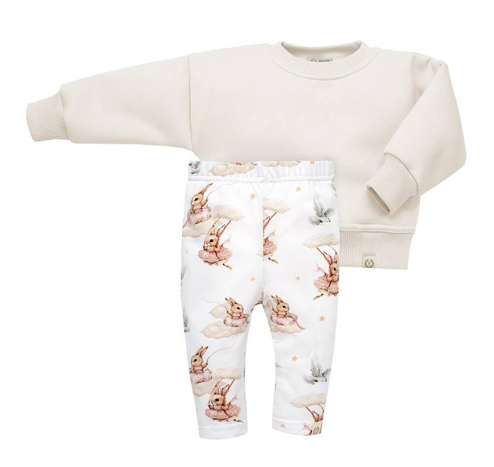 • bluza: 80% bawełna, 20% poliester; legginsy: 93% bawełna, 7% poliester