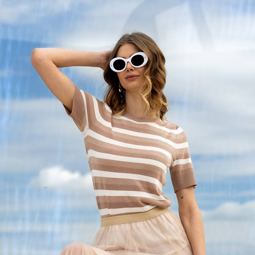 Krótkie rękawy czynią bluzkę idealną na cieplejsze dni lub jako warstwę pod marynarkę czy sweter w chłodniejsze miesiące. Bluzka została wykonana z najwyższej jakości wiskozy, która jest znana ze swojej miękkości, oddychalności i wyjątkowej zdolności do drapowania się na sylwetce. Domieszki w składzie materiału zapewniają dodatkową elastyczność i trwałość, co pozwala utrzymać kształt bluzki i jej wygodę przez cały dzień.