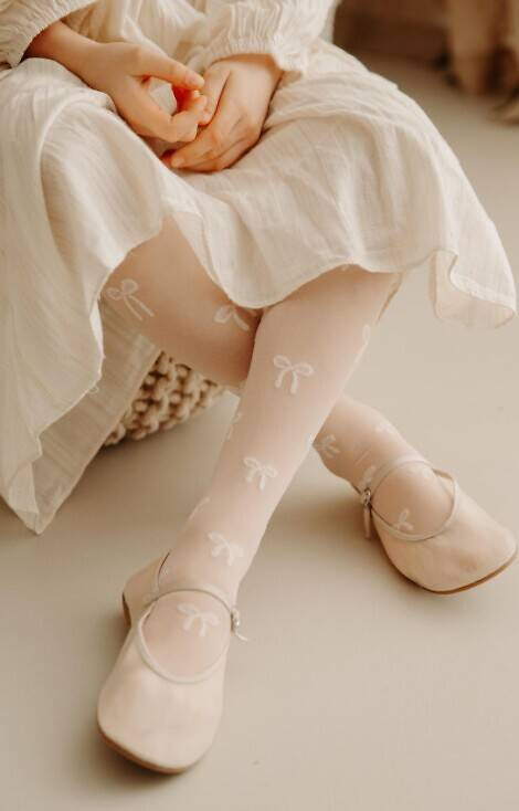 Rajstopki dziewczęce 20 den . Wzór w kokardki. Idealne na wszystkie uroczystości.