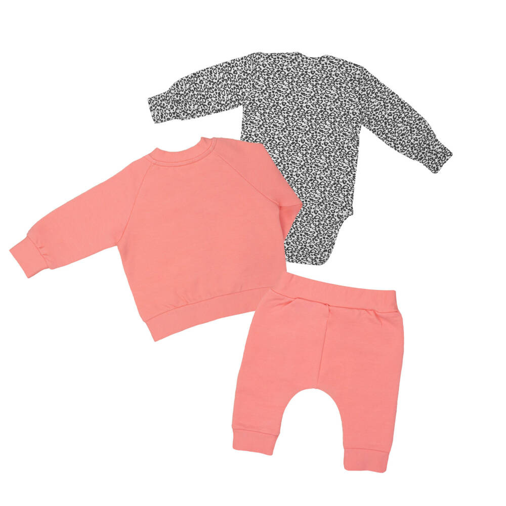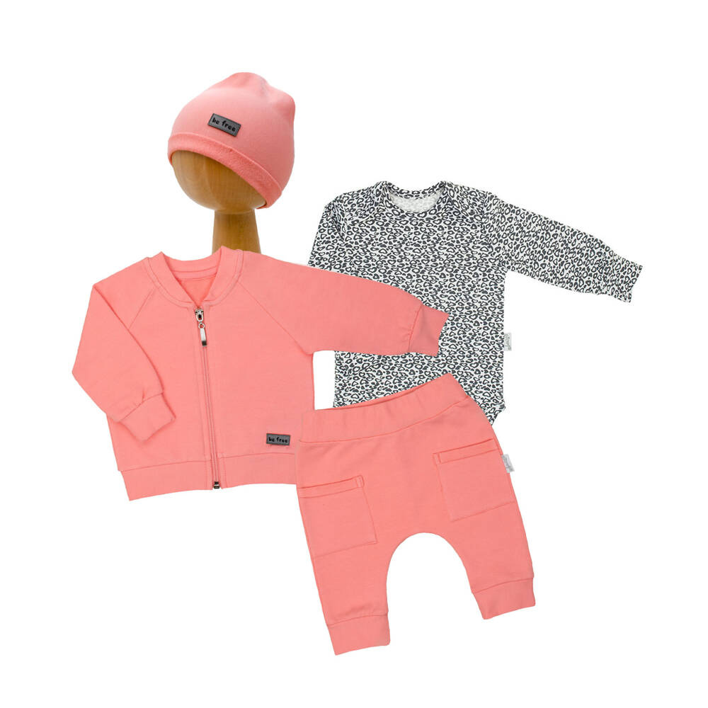 Mamy do zaoferowania komplet niemowlęcy, który składa się z body, bluzy, spodni i czapki. Ubranka zostały wykonane z wysokiej jakości 100% bawełny.
