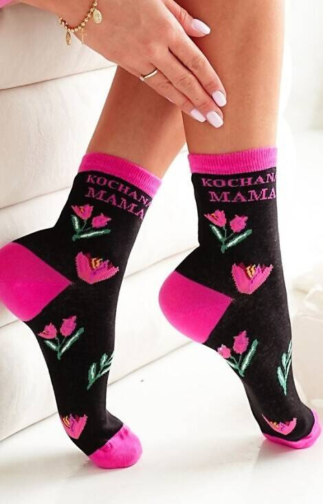 0200 Dla Mamy Skarpety damskie Milena - czarny- różowy
