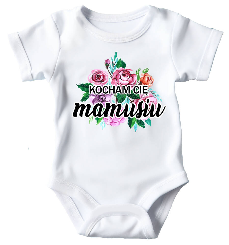 Body krótki rękaw "Kocham Cię mamusiu" z kwiatami Moocha biały