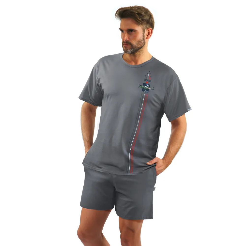 Bawełniana piżama męska, krótki rękaw i spodenki 2404 Military Sesto Senso - grafitowy