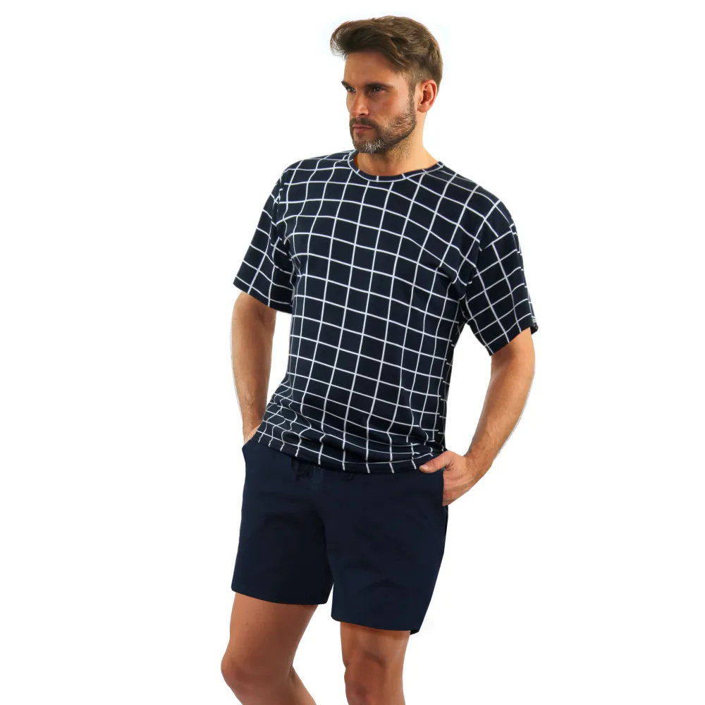 Bawełniana piżama męska, krótki rękaw i spodenki 2485/02 Sesto Senso - granatowy