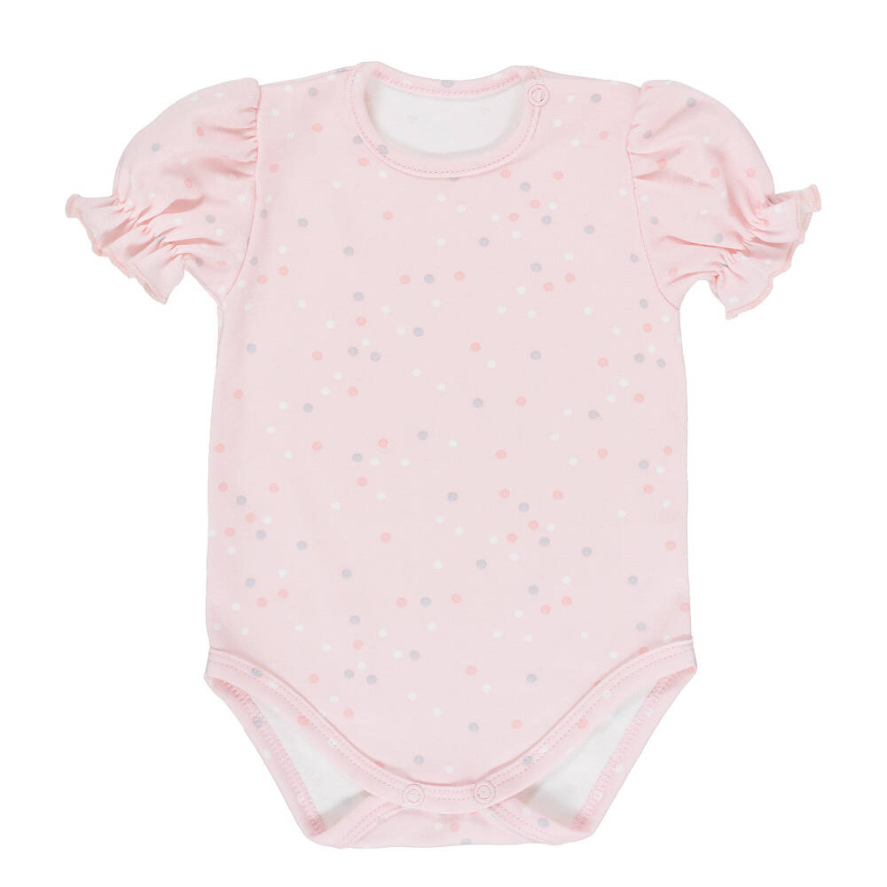 Body z krótkim rękawem, uszyte z 100% bawełny. Materiał posiada certyfikat Oeko-Tex Standard 100 Tekstylia godne zaufania. Zapinane na wygodne bezniklowe napy. Body idealne na lato.