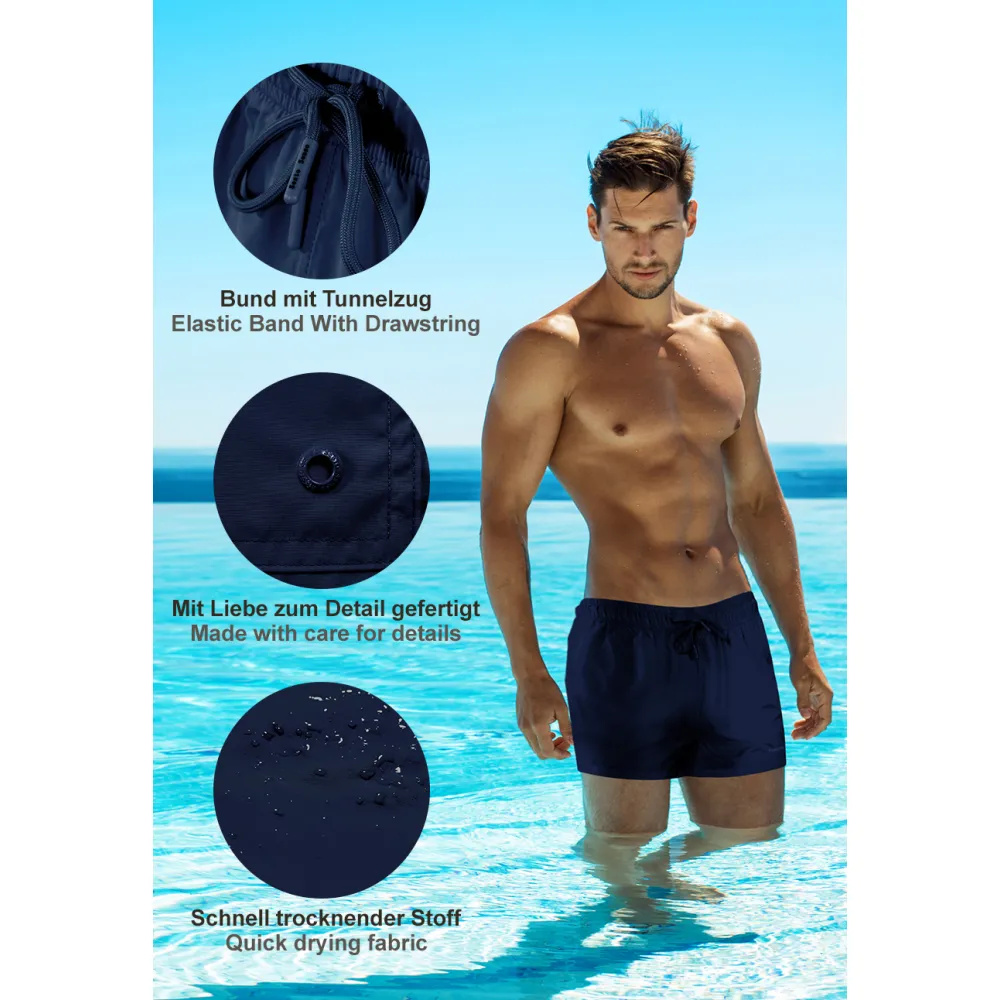 Model idealny na plażę oraz do morskich kąpieli. Model z regulowaną, elastyczną talią. Posiadają trzy kieszenie: dwie boczne, wewnątrz wykonane z siatki oraz jedną tylną materiałową, zapinaną na rzep. Wewnętrzne spodenki wykonane z miękkiej siatki.
