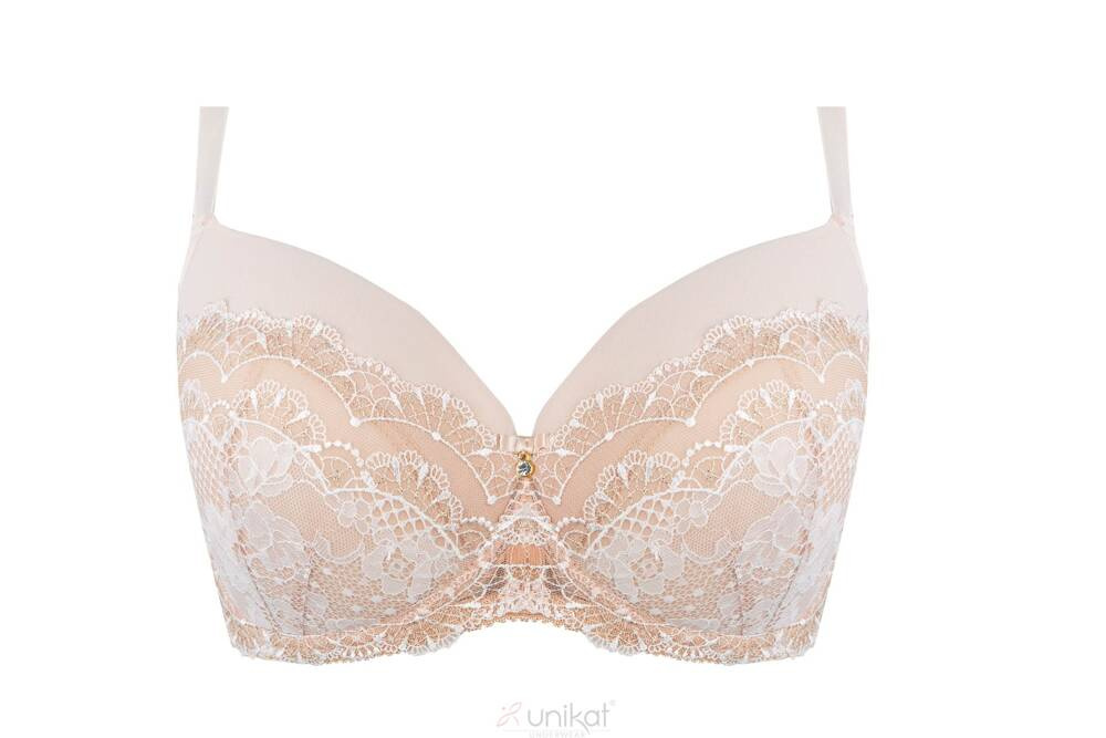 Dzięki starannie dopracowanemu krojowi biust jest stabilnie podtrzymany i uniesiony do góry. Miseczki są usztywniane, doprecyzowany krój pięknie formuje piersi w pożądany, okrągły kształt. Zapewnia odpowiednie wsparcie i uniesienie biustu do góry. Ramiączka są nieodpinane z możliwością regulacji na całej długości.