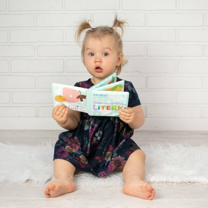 Miękka książeczka z piszczałką. Wzbudza zainteresowanie dziecka i zachęca do pierwszej nauki.