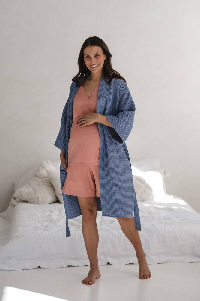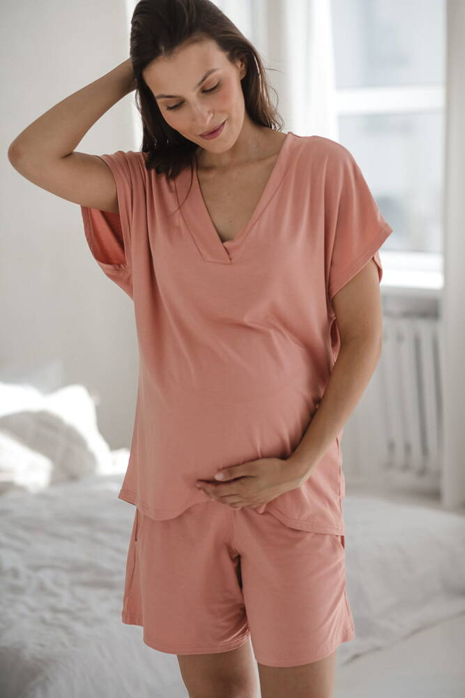 Bambusowe spodnie od piżamy ciążowej krótkie Moon Milk&Love herbaciana róża
