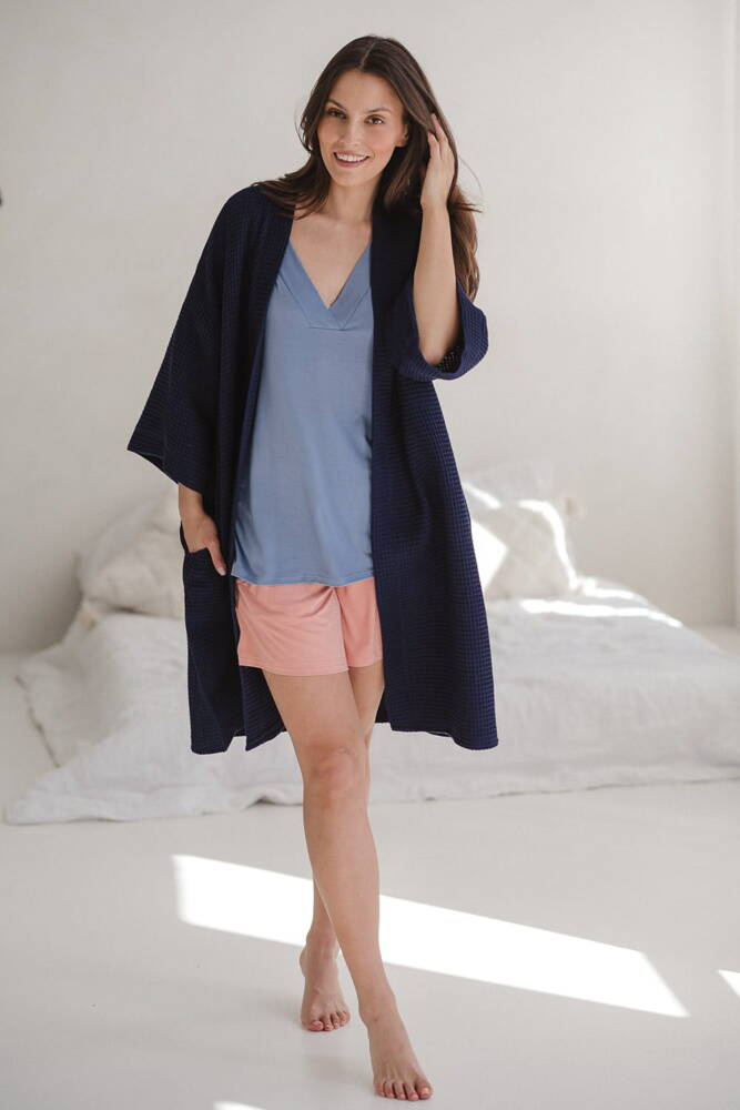 Krótkie spodnie od piżamy ciążowej to element kolekcji Moon. Spodnie ciążowe wykonane są z wysokogatunkowej dzianiny bambusowej z domieszką elastanu, która ładnie dopasowuje się do zmieniających się kształtów ciała w ciąży i po porodzie. Dodatkowo bambusowy materiał pozwala skórze oddychać i ma właściwości antybakteryjne. Spodnie ciążowe od piżamy zostały zaprojektowane z myślą o Twojej wygodzie . Miękki pas ciążowy, który nie uciska i ładnie układa się na brzuszku lub po wywinięciu - pod brzuszkiem ciążowym.. Po porodzie spodnie możesz nosić, jako zwykłe spodnie od piżamy. Najwyższej jakości, oddychające dzianiny, które przeszły rygorystyczne testy Oeko-Tex Standard 100. Uszyte w Polsce