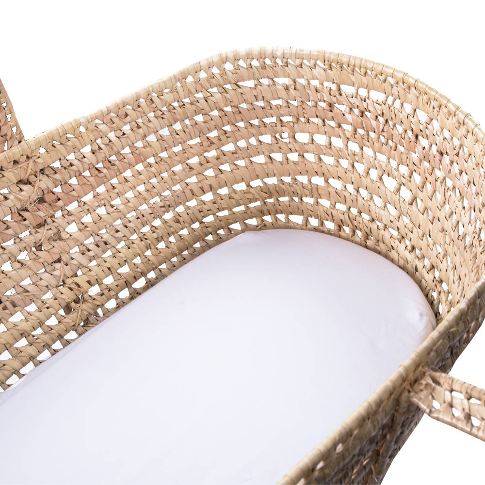Prześcieradło do kosza Mojżesza białe. Posiada gumkę, która zapobiega zsuwaniu się z materacyka. Nasze prześcieradło zapewnia dziecku bezpieczny i przyjemny sen.