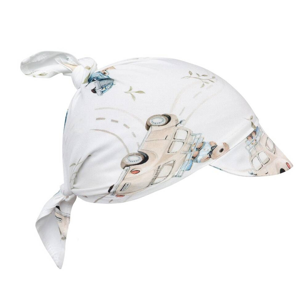 Chustka wykonana z najwyższej jakości tkaniny bambusowej, która jest niezwykle miękka w dotyku. Świetnie chroni główkę przed wiatrem i promieniami słońca. Idealna na lato – jest lekka i przewiewna, a uroczy daszek osłoni przed promieniami słonecznymi czy wiatrem. Daszek można wywinąć, lub zostawić na płasko. Chustka jest wiązana na supełki, dzięki czemu można delikatnie regulować jej obwód. Dopasuje się w ten sposób do maluszków w każdym wieku.