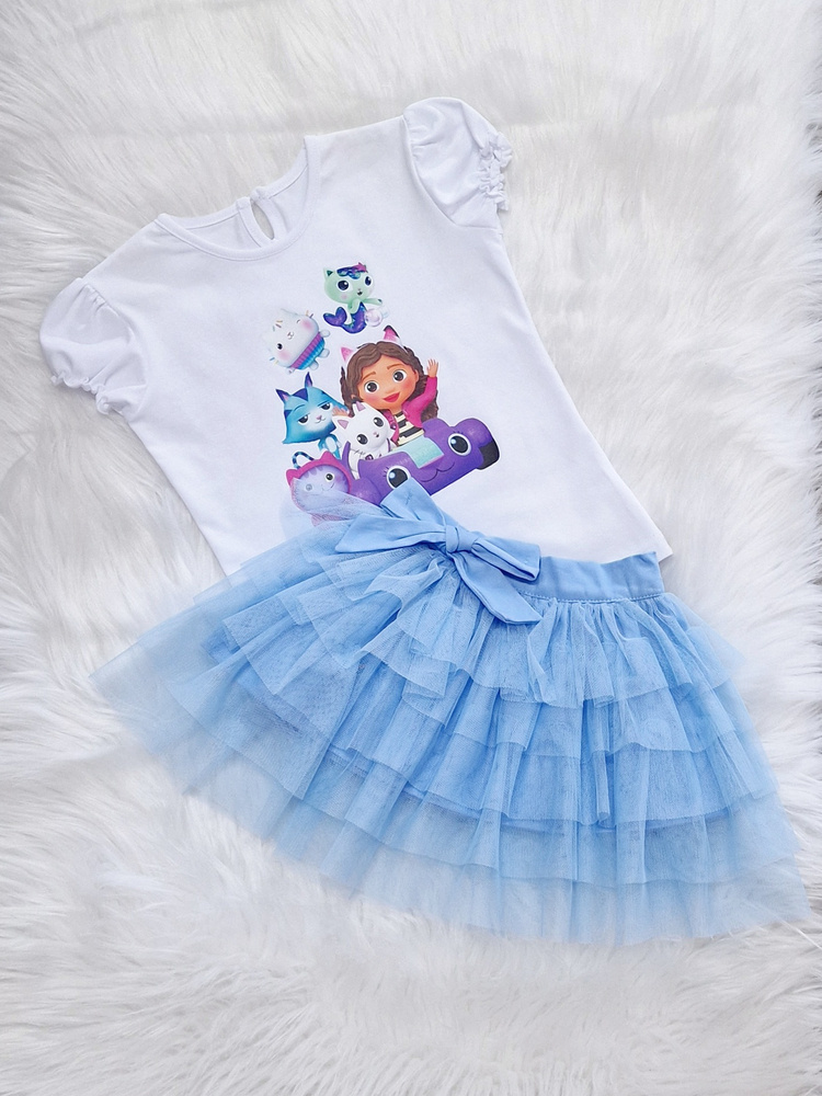 Koszulka dziecięca wykonana z miękkiej i przyjemnej w dotyku bawełny. Modny krój! Do kompletu polecamy spódniczkę Inez i kolarki.