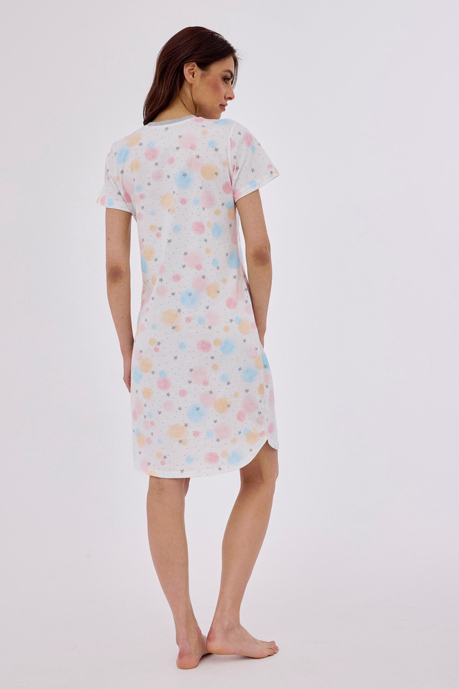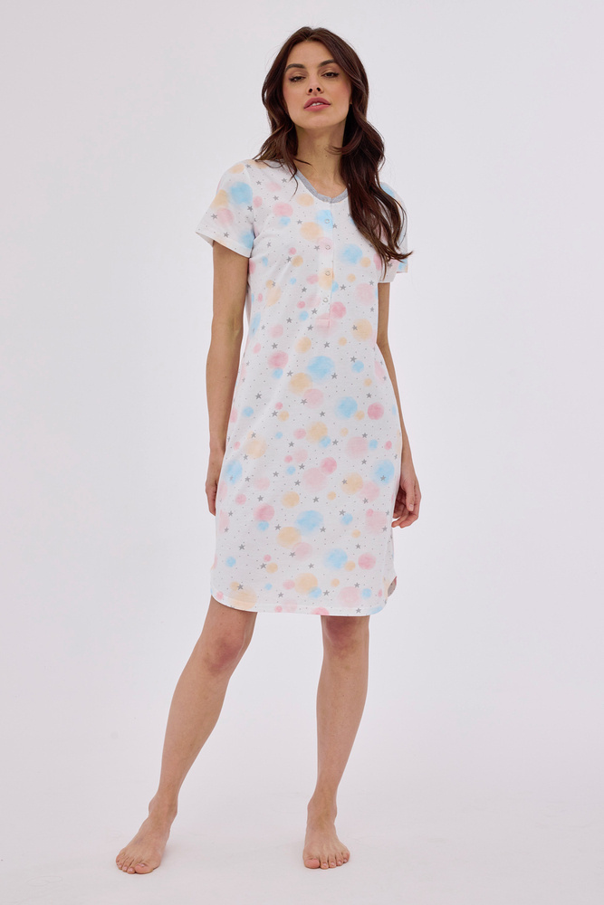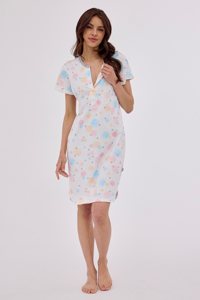 Koszula dla mam karmiących z krótkim rękawem wykonana z wysokiej jakości wzorzystej bawełny.