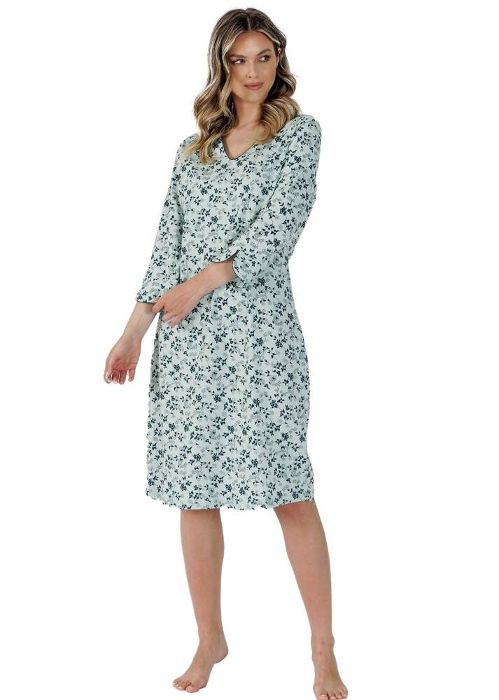 Wzorzysta koszula damska  uszyta z wysokiej jakości bawełny.  Rękawy 3/4 z rozcięciami. Długość do kolan