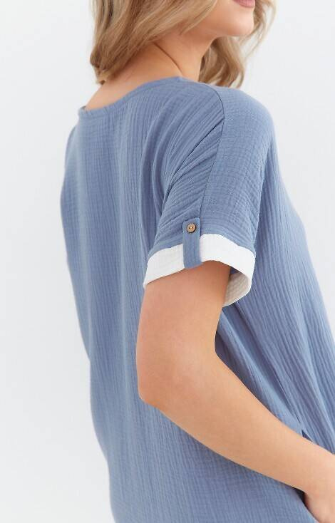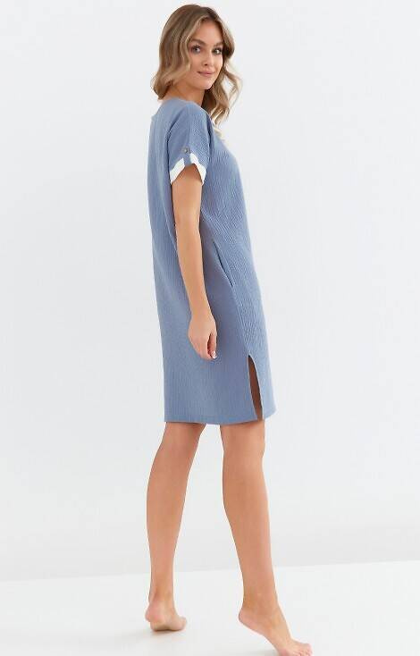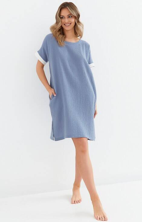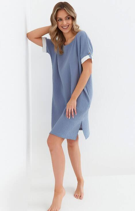 Koszula nocna wykonana z wysokiej jakości miłej w dotyku bawełny muślinowej . Koszulka z krótkim rękawem .