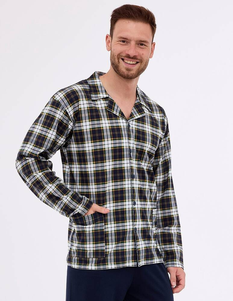 Piżama męska rozpinana z długim rękawem i długimi spodniami.