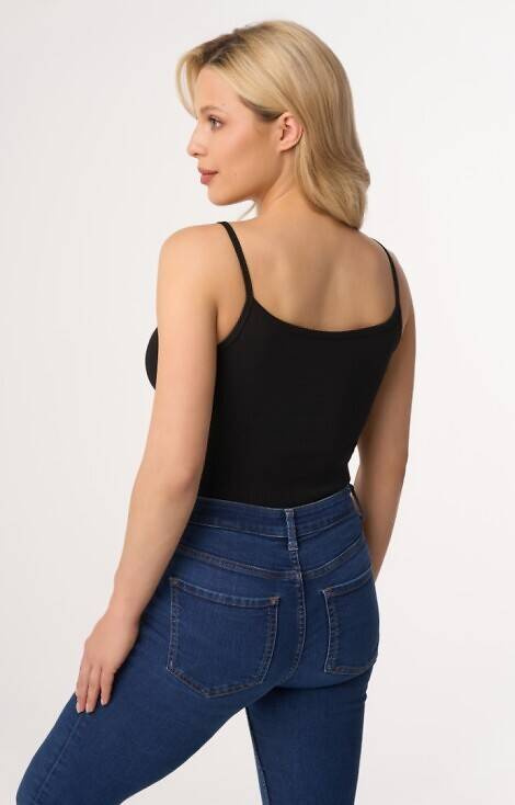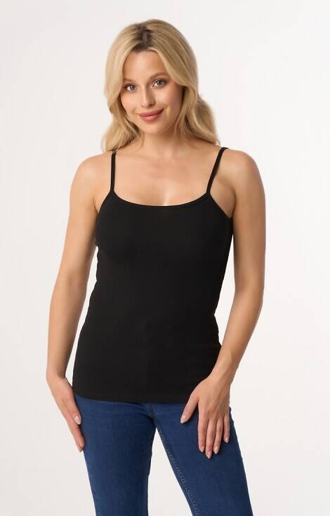 Koszulka damska na wąskich ramiączkach wykonana z bawełny w prążek z dodatkiem lycry . Idealnie dopasowuje się do ciała zapewniając komfort noszenia. Idealna jako bluzka, podkoszulka, a nawet do noszenia pod żakiet. Powyższy produkt jest wyrobem najwyższej jakości, został zaprojektowany według najnowszych trendów mody.