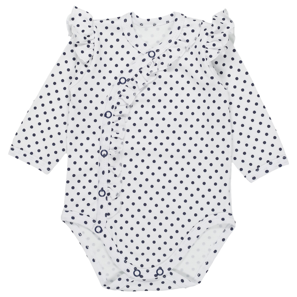 Body kopertowe wykonane z 100% bawełny ozdobione falbanką. Całe rozpinane na bezniklowe antyalergiczne napki, co bardzo ułatwia ubieranie maluszka.