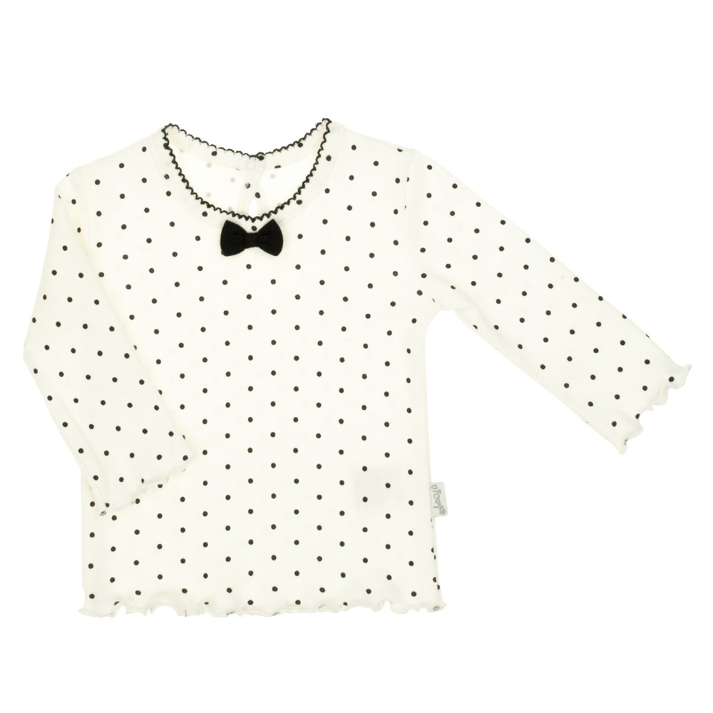 Modna bluzka z długim rękawem dla dziewczynki. Model uszyty z drukowanej bawełny. Materiał posiada certyfikat Oeko-Tex Standard 100 Tekstylia godne zaufania.