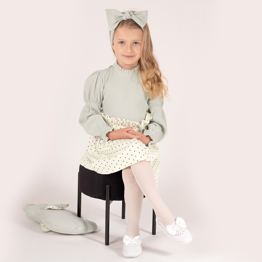Modna bluzka z długim rękawem dla dziewczynki. Model uszyty z drukowanej bawełny. Materiał posiada certyfikat Oeko-Tex Standard 100 Tekstylia godne zaufania.