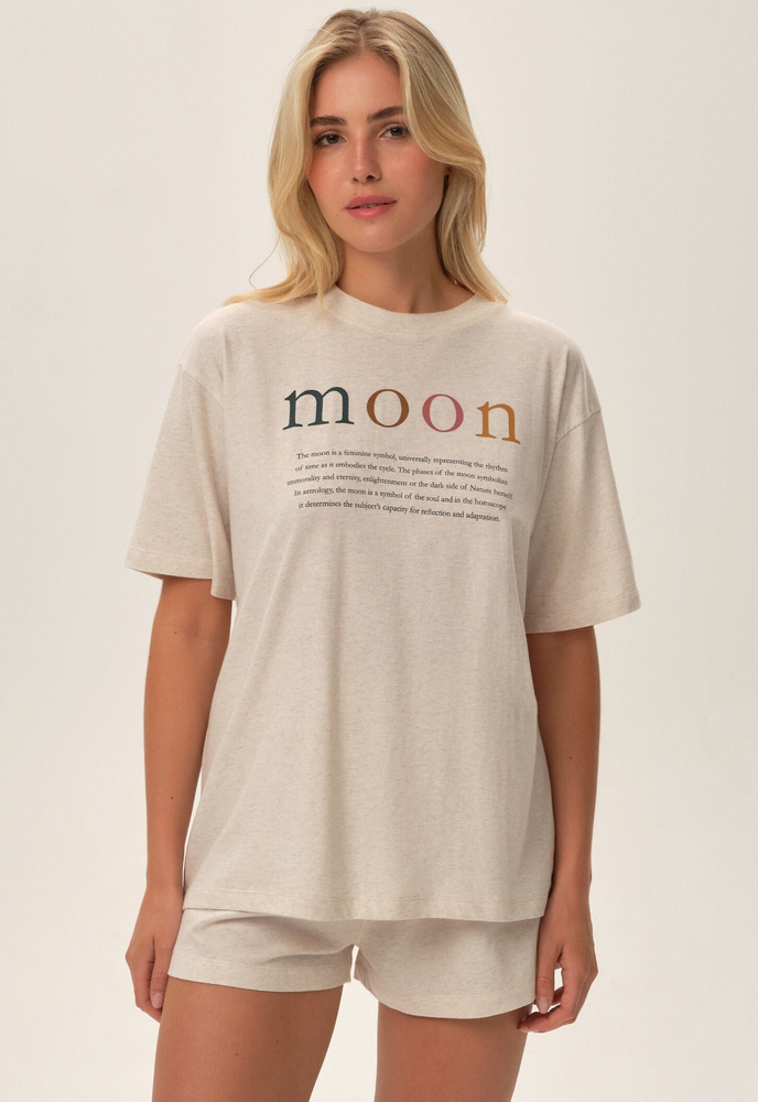 Piżama damska wykonana z wysokiej jakości bawełny . Koszulka z krótkim rękawem .