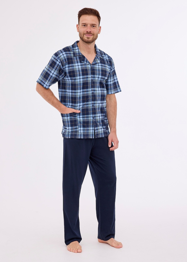 Piżama męska rozpinana z krótkim rękawem i długimi spodniami.