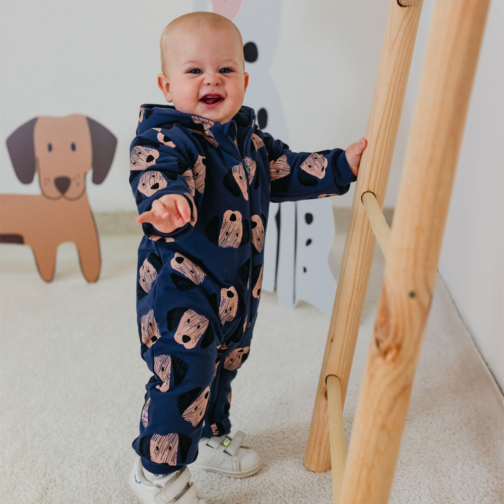 Pajac z kapturem kombinezon Puppy Playtime Eevi- granatowy