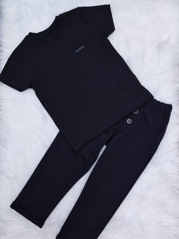 Koszulka dziecięca Classic krótki rękaw z haftem Bambarillo czarny
