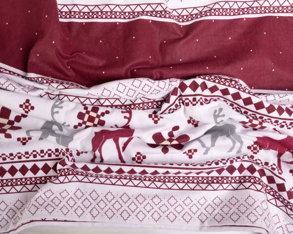 Pościel flanelowa świąteczna renifery F-89A Matex czerwony
