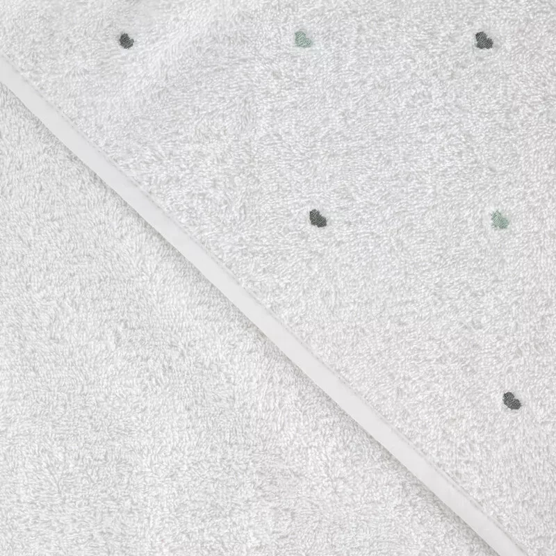 Okrycie kąpielowe zapewnia niezrównany komfort i chłonność. Dzięki obszernemu kapturkowi, okrycie idealnie chroni delikatną główkę dziecka po kąpieli. Można używać go jako kocyka lub maty do zabawy. Tkanina jest niezwykle miękka i przyjemna w dotyku, nie powoduje podrażnień nawet na wrażliwej skórze malucha. Dodatkowo, ręcznik został starannie obszyty bawełnianą lamówką, a kapturek ozdobiony jest aplikacją, która pobudza wyobraźnię malucha, co nadaje mu elegancki wygląd.