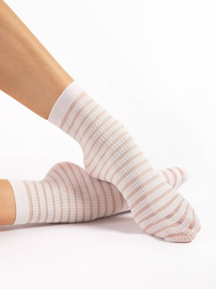 Skarpetki damskie o grubości 20 den. Ozdobione wzorem w paski