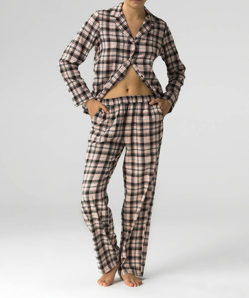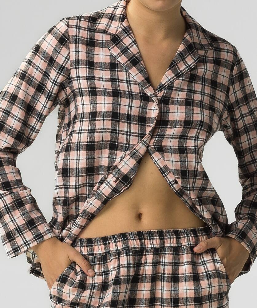 Damska piżama o pięknej kolorystyce to ciekawa propozycja w nadchodzącym sezonie. Spodnie z kieszeniami oraz bezuciskową gumą w pasie zapewniają komfort i swobodę użytkowania. Góra od piżamy to bluzka rozpinana z długim rękawem. To ciekawy i ponadczasowy wzór, który sprawia, że całość nabiera klasycznego wyrazu.