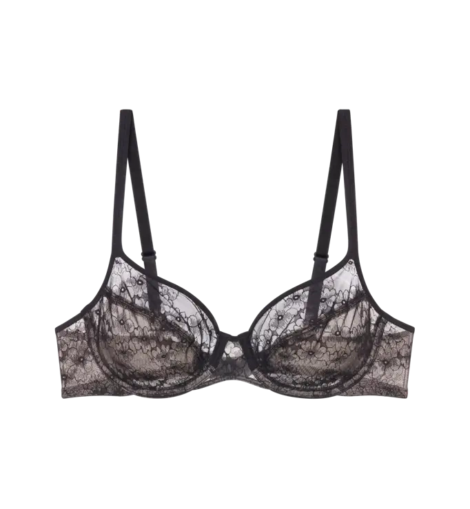 Wykonany z miękkiej elastycznej tkaniny o gładkim koronkowym splocie, aby wyglądał pięknie i pasował jak szyty na miarę. Biustonosz z fiszbinami Podtrzymująca i elastyczna koronka żakardowa Modelujące biust, dwuczęściowe miseczki