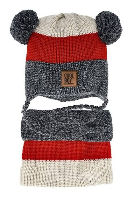 Dwuwarstwowy komplet chłopięcy z dwoma pomponami. Do kompletu golf. Idealny na chłodne dni