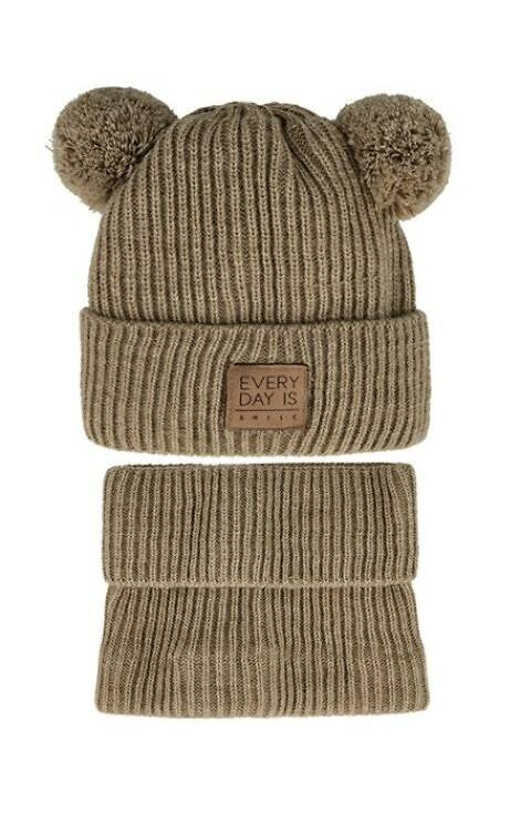 Komplet czapka+golf 48-344 AJS kakaowy