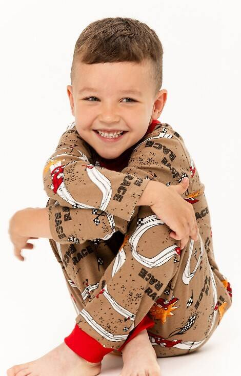 Piżama chłopięca wykonana z wysokiej jakości delikatnej w dotyku bawełny. Koszulka z długim rękawem z nadrukiem. Do kompletu długie spodnie z ozdobnym wzorem