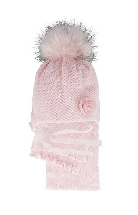 Czapka dla dziewczynki z pomponem. Do kompletu szalik. Idealny na chłodne dni