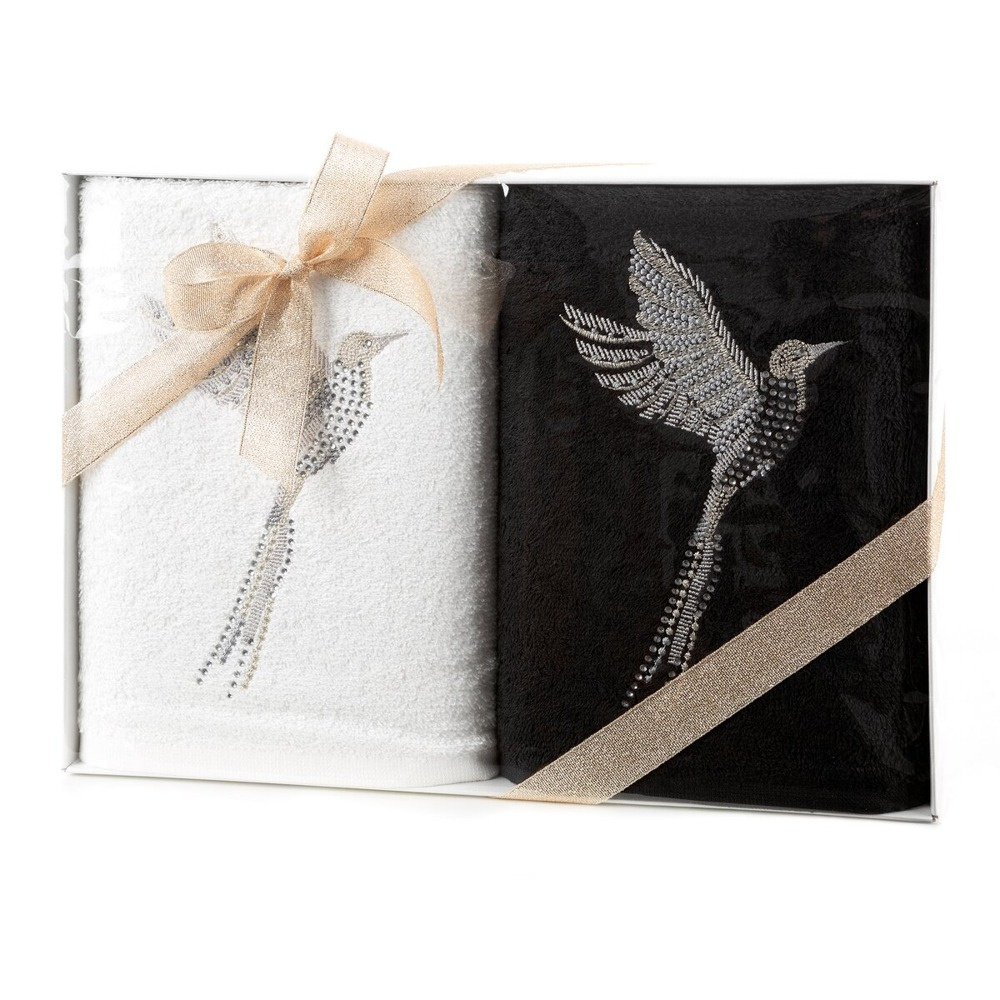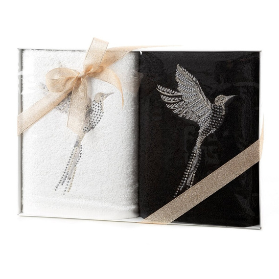 Komplet ręczników świąteczny zestaw upominkowy Joy 1 Eurofirany biały/czarny