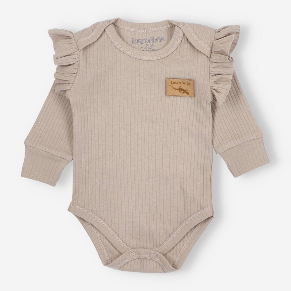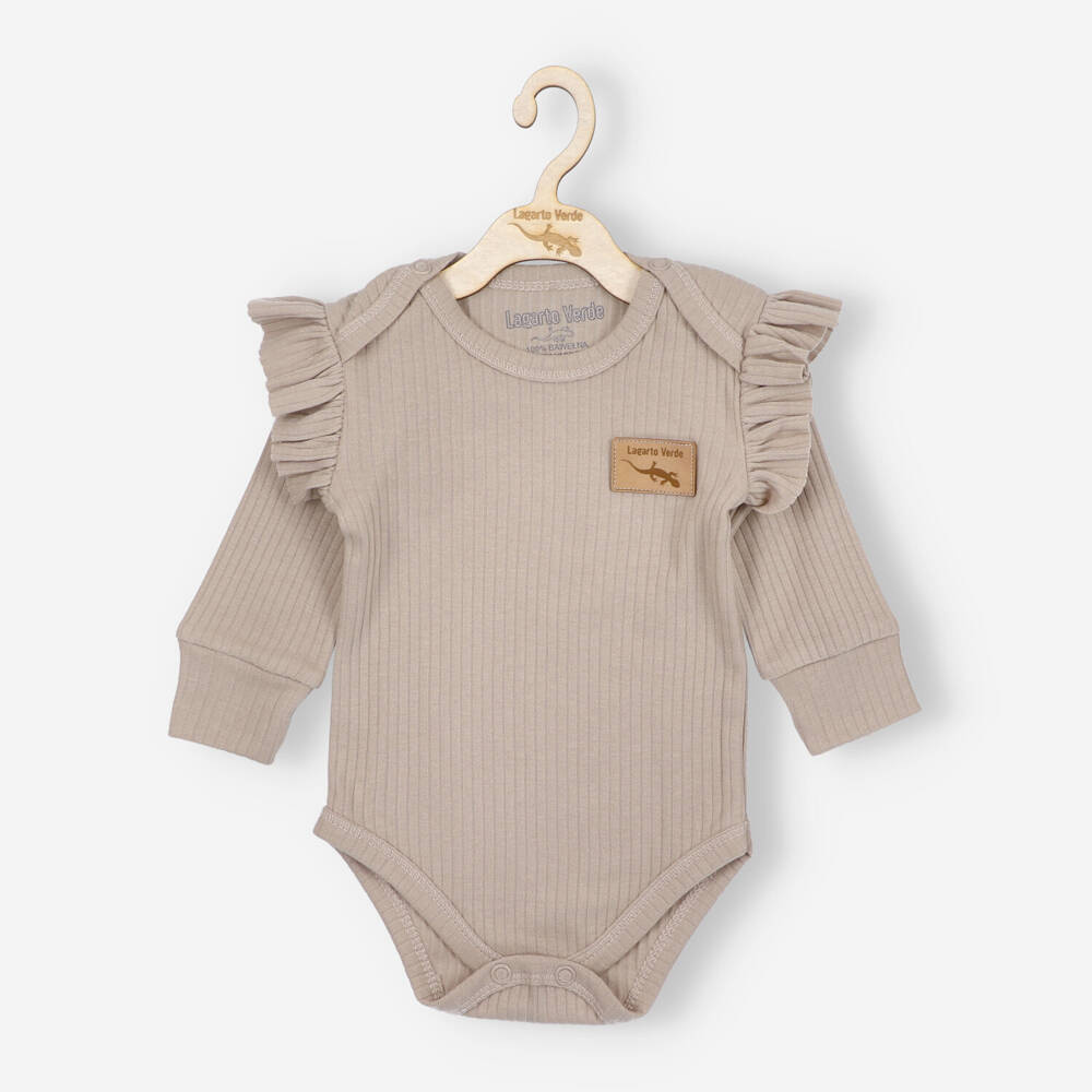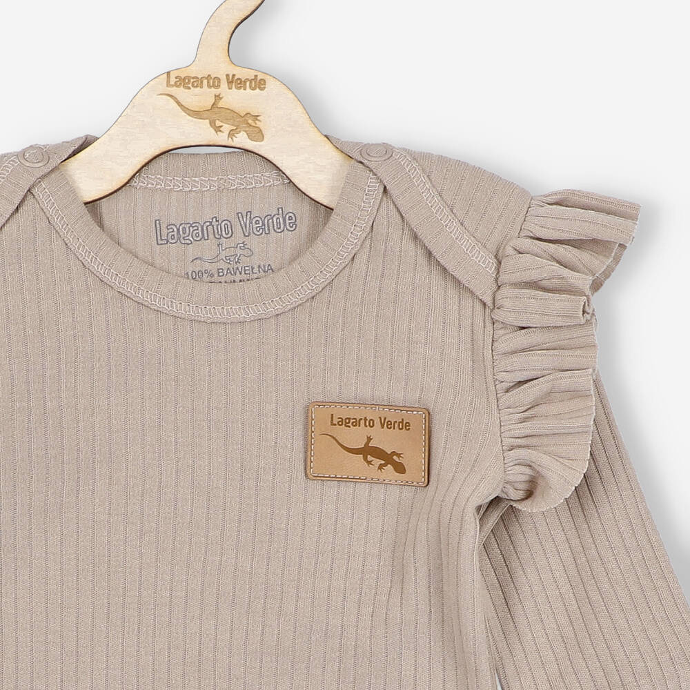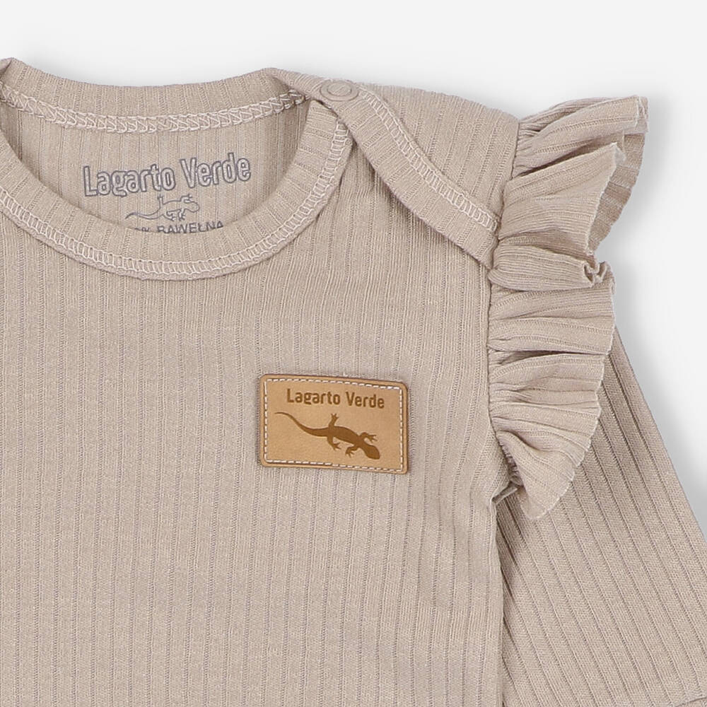 Dzianina prążkowana Body z falbankami Lagarto Verde - beżowy