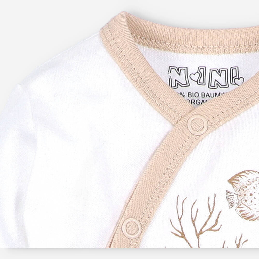 Body uszyte w Polsce z bardzo przyjemnej w dotyku bawełny organicznej. Włókna bawełny eko są silniejsze, bardziej sprężyste i odporne na rozciąganie dzięki czemu posłużą dłużej. Bezniklowe napy i delikatne, miękkie lamówki to dodatkowe atuty ubranka. Wklejana metka zamiast wszywki – zapobiega podrażnieniom skóry. Marka NINI jako jedna z niewielu w Polsce posiada międzynarodowy certyfikat OEKO-TEX STANDARD 100, który potwierdza, że jej wyroby spełniają najwyższe normy bezpieczeństwa dla niemowląt Kupując ubranka NINI dbasz o środowisko oraz bezpieczeństwo i zdrowie swoich dzieci.