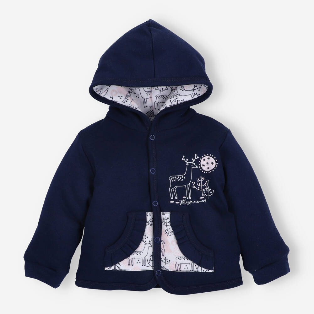 Kurtka wykonana z miękkiej i przyjemnej w dotyku bawełny organicznej. Model ocieplany. Marka NINI jako jedna z niewielu w Polsce posiada międzynarodowy certyfikat OEKO-TEX STANDARD 100, który potwierdza, że jej wyroby spełniają najwyższe normy bezpieczeństwa dla niemowląt Kupując ubranka NINI dbasz o środowisko oraz bezpieczeństwo i zdrowie swoich dzieci. Krój umożliwia całkowite rozpięcie, przez co ubranko jest funkcjonalne i wygodne.