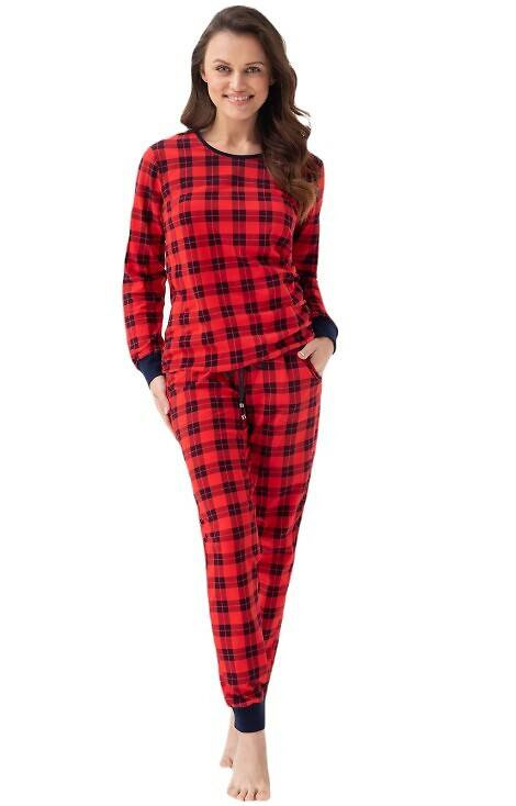 Piżama damska uszyta z wysokiej jakości bawełny z długim rękawem. Całość w kratkę.