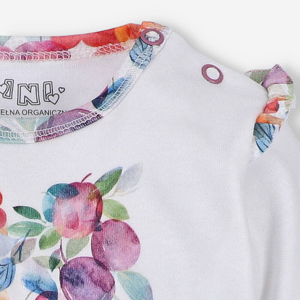Zapinana na ramionku na napkę. Na środku nadruk. Marka NINI posiada międzynarodowy certyfikat OEKO-TEX STANDARD 100, który potwierdza, że jej wyroby spełniają najwyższe normy bezpieczeństwa dla niemowląt.