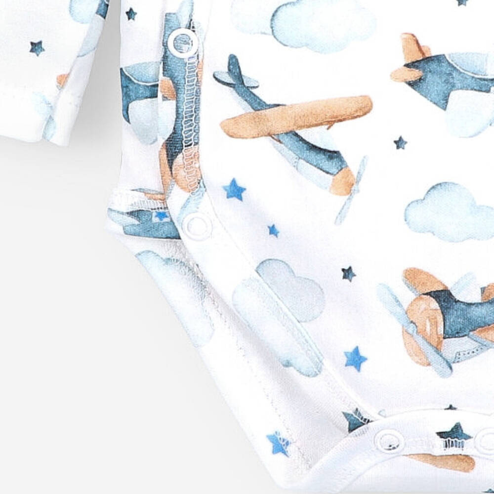 Body kopertowe z bawełny organicznej Samoloty Nini druk