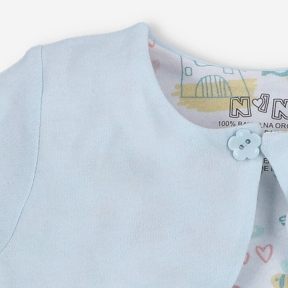 Bolerko wykonane z miękkiej i przyjemnej w dotyku bawełny organicznej. Marka NINI jako jedna z niewielu w Polsce posiada międzynarodowy certyfikat OEKO-TEX STANDARD 100, który potwierdza, że jej wyroby spełniają najwyższe normy bezpieczeństwa dla niemowląt Kupując ubranka NINI dbasz o środowisko oraz bezpieczeństwo i zdrowie swoich dzieci. Krój umożliwia całkowite rozpięcie, przez co ubranko jest funkcjonalne i wygodne.