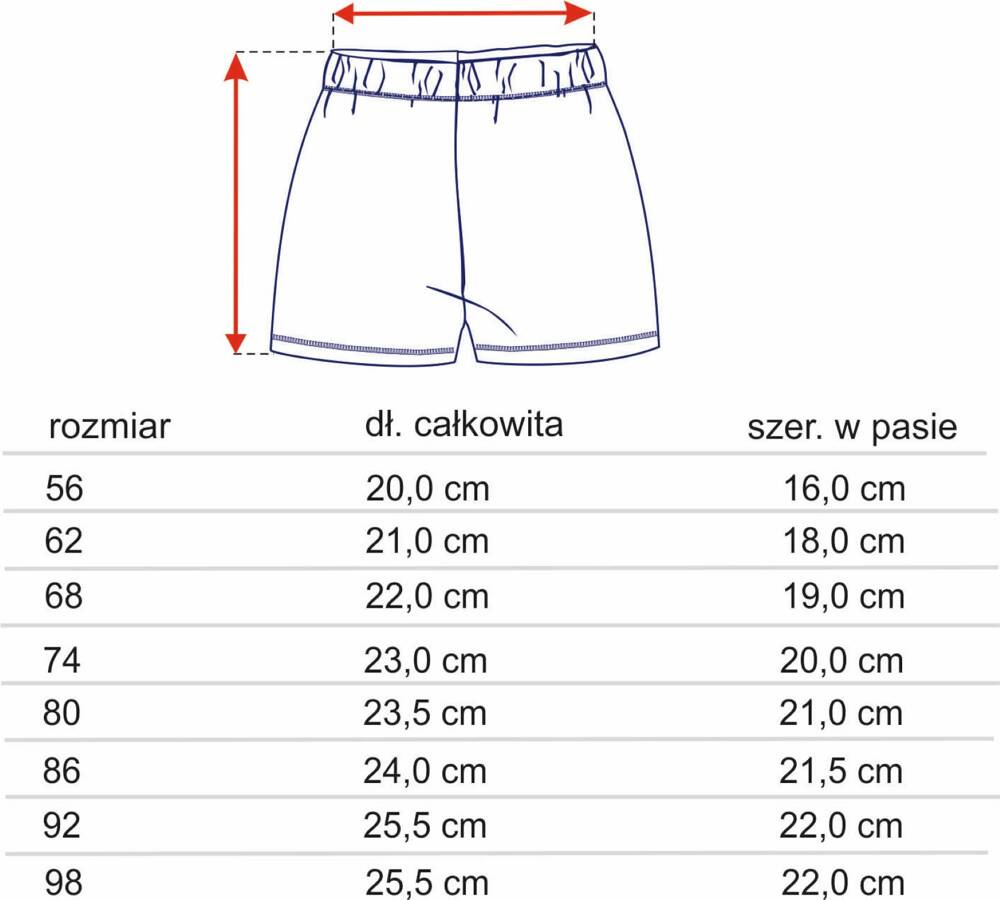 Szorty wykonane z bawełny organicznej.Ubranko idealne na spacer jak i podczas zabawy w domu. Wysoka jakość materiału sprawia, że nie mechaci się oraz nie traci kształtu po praniu. W pasie ściągacz z miękką gumą, a nogawki zakończone ściągaczem. Uszyte z dzianiny dresowej. Wklejana metka zamiast wszywki – zapobiega podrażnieniom skóry. Marka NINI jako jedna z niewielu w Polsce posiada międzynarodowy certyfikat OEKO-TEX STANDARD 100, który potwierdza, że jej wyroby spełniają najwyższe normy bezpieczeństwa dla niemowląt Kupując ubranka NINI dbasz o środowisko oraz bezpieczeństwo i zdrowie swoich dzieci.