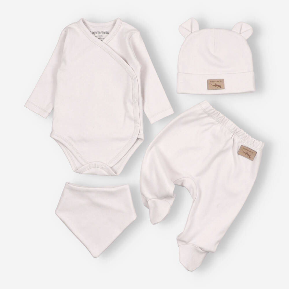 Komplet niemowlęcy z bawełny premium gładki Lagarto Verde - ecru