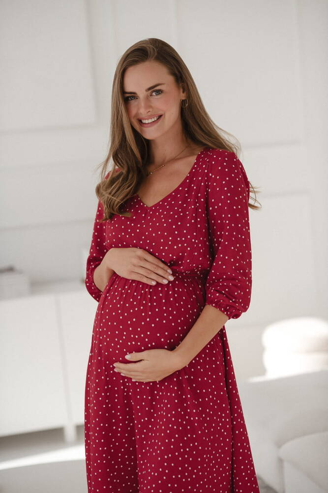 Sukienka ciążowa i do karmienia Lovely Dress Midi rękaw 3/4 Milk&Love czerwona w groszki