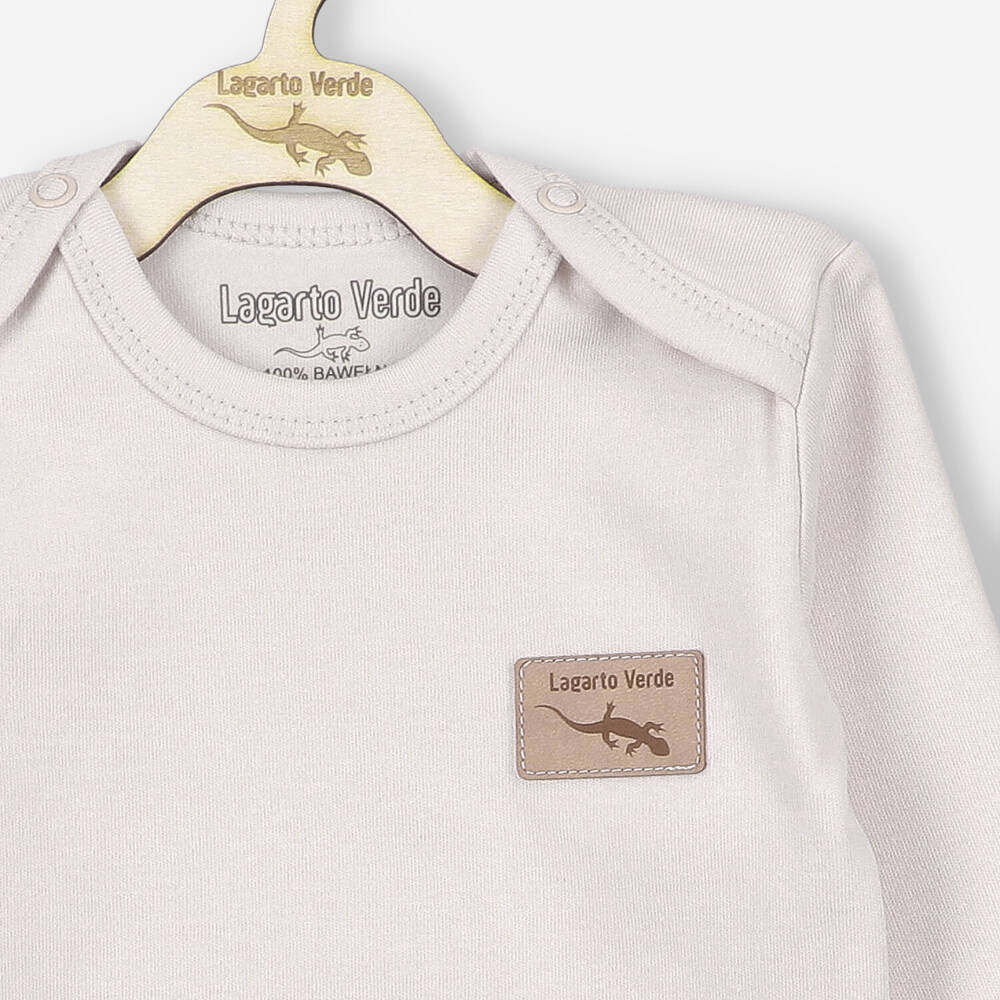 Body uszyte w Polsce z bardzo przyjemnej w dotyku bawełny. Bezniklowe napy i delikatne, miękkie lamówki to dodatkowe atuty ubranka. Wklejana metka zamiast wszywki – zapobiega podrażnieniom skóry.